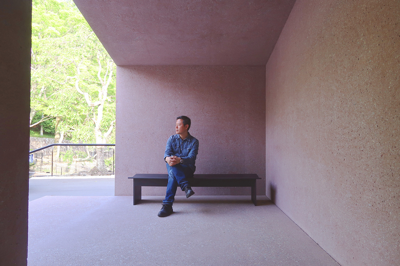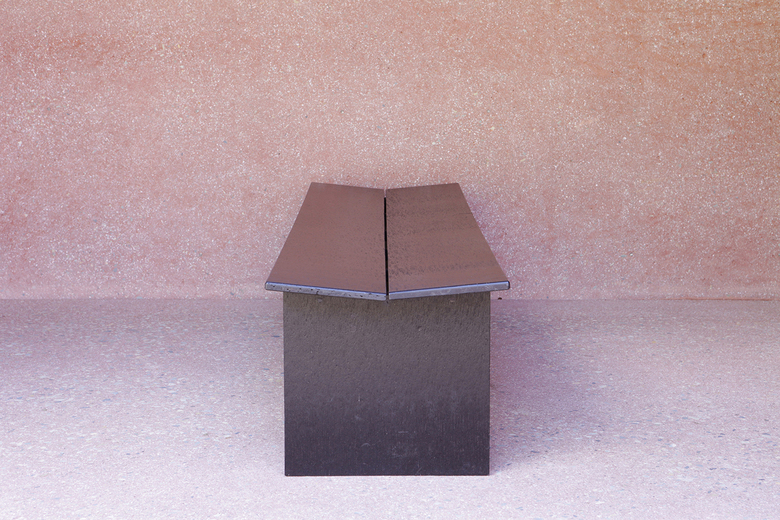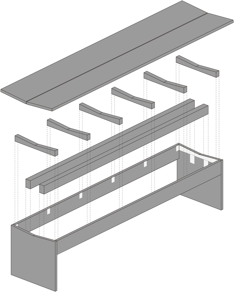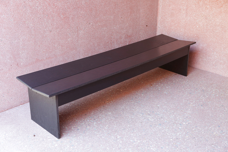 素材として車のバンパーやペットボトルのキャップなどの廃プラスチックを利用した再生プラスチック製のパネル、「エコマパネル」を使用した。座面は中心に向かって勾配を付けることで座面の雨水を中心から地面へと流すようにすると同時に、その勾配によってフィット感を与え、快適に座れるようにしました。