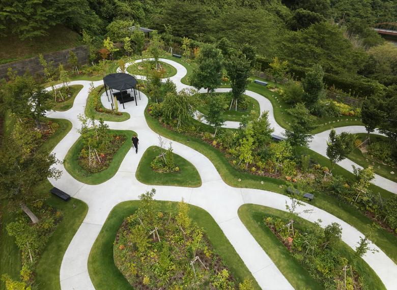 This plan begins by rejuvenating the forest landscape in a section of mountainous land that was once flattened during development. Utilising the natural topography with its undulating terrain and depth, the design incorporates winding paths for conversation and arranges burial sites in island-like and peninsula-like formations. This configuration increases the number of graves accessible from the road while creating a layout where the scenery changes with each step, fostering quiet moments for reflection in nature. On the north side, we have placed family-use columbariums, and on the south side, individual burial sites using paper urns that return to nature, incorporating a cyclical relationship with the environment into the design.