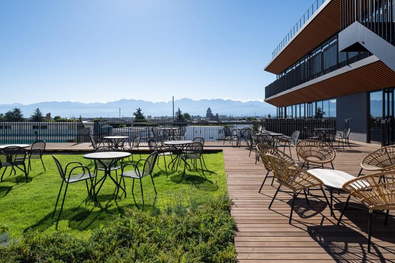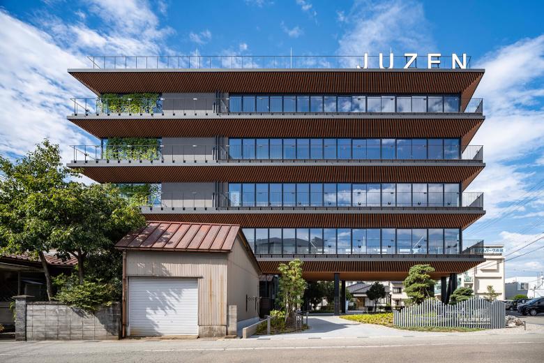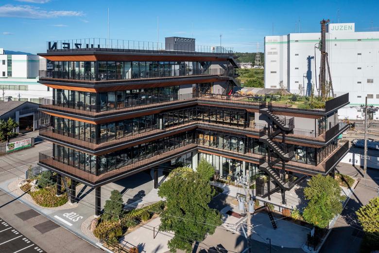 Headquartered in the City of Toyama, Juzen Chemical Corporation is a contract manufacturer of active pharmaceutical ingredients. Imbuing the culture and natural beauty of Toyama among its manufacturing complex, the company’s new head office was designed to present an indoor ambiance like a relaxing wooded area, which could additionally provide employees with space for respite.