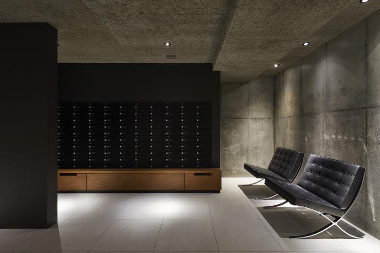 As mentioned above, the Japanese mansion blocks tend to look very similar due to the requirement of the balconies on the facade. We took extra care to make sure that the boilers and air-conditioning units placed outside on the balconies (per the norm in Japan) as discreetly tucked away as possible. Handrails, exterior walls and the balcony ceilings have been painted black. We wanted to bring out the light grey colour of concrete.