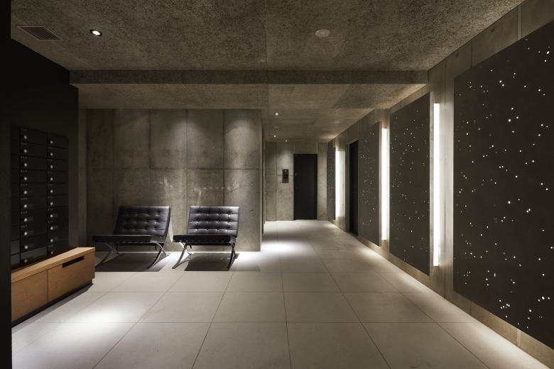 We also create special sculptural pieces using HPC panels to light up the communal entrance area inside the building. We cast circular acrylic moulds into the concrete panels and they light up like the night sky with stars. The generously-proportioned entrance area is also an added luxury not usually granted to ‘one-room mansion’ blocks in built areas such as Tokyo and Yokohama.