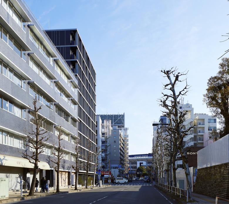 The Kannai Blade Residence - so called because its facades are intersected with thin, bladelike concrete fins - has been designed by the Japanese architectural studio Key Operation Inc. It sits on a corner site within a 5-minute walk of the well-connected Yokohama Kannai Train Station, not far from central Tokyo.