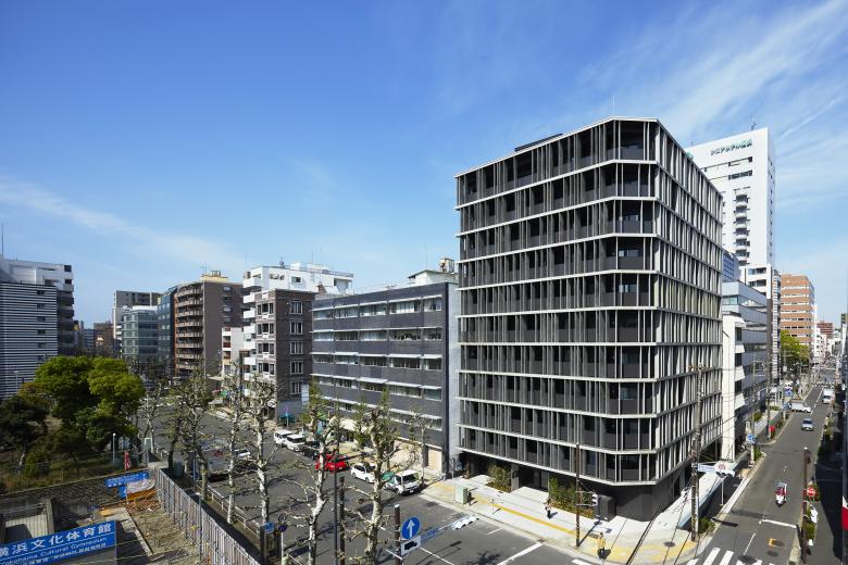 The new 11-storey housing block replaces the 4-storey post-war office building known as “Furocho 2-chome Daiichi Kyodo Building.” The original building was designed by Miyauchi Architects in a style typical of the time, built in concrete, characteristically robust and lowrise, functioning as a firebreak. During WWII, much of Yokohama City was razed to the ground leading to the government-sponsored reconstruction efforts to comply with strict fire regulations.