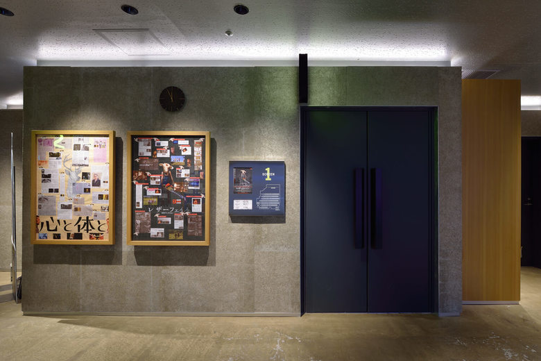 席数が96席と78席の2スクリーンを有するこの映画館は、シネマカリテとして開館する前は居酒屋として使用されていた。そのため劇場部分も左右非対称の形をしており、ロビー部分も劇場のいびつなプランがそのまま出た凹凸のある壁に囲まれた隙間のようなスペースになっている。この凹凸のある壁が、一律に同じ木調のフィルムで覆われているため、劇場とロビーの位置関係が分かりくにかった。