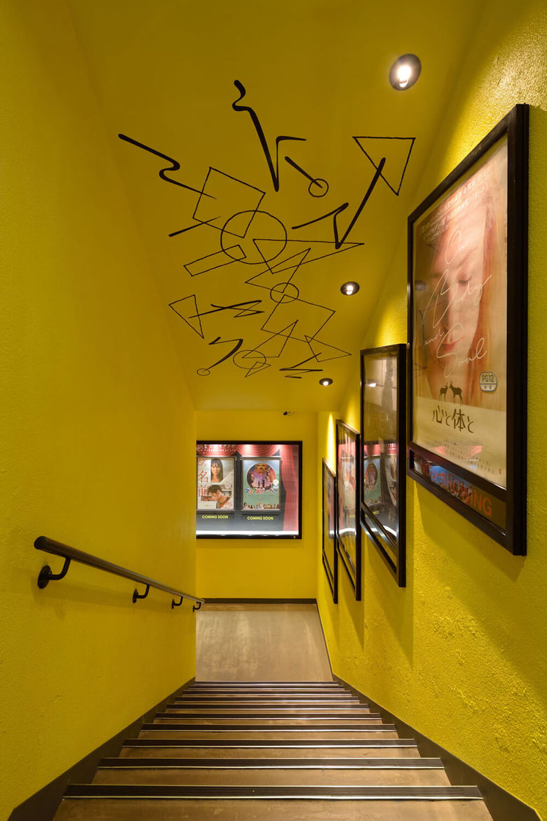 シネマカリテの姉妹館である新宿武蔵野館を2016年に全面改装した際は、劇場もロビーもシネマカリテより大きかったため、映画の世界観を表現するテンポラリーな展示をメインに考え、映画のセットのような内装デザインとしたが、シネマカリテは面積が半分以下なので、なるべく軽やかで明るいロビーとすることを考えた。