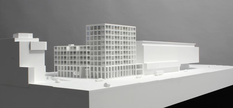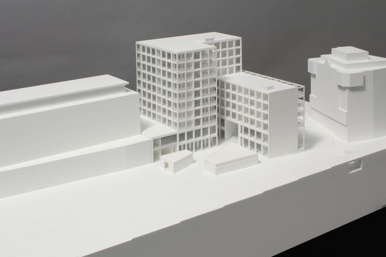 Das geplante Wohn- und Geschäftshaus Central Plaza ist ein prägnanter Punktbau mit 10 Stockwerken.