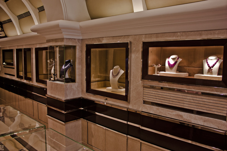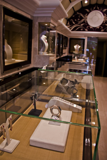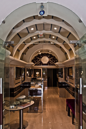 The fine jewelers were given a colonial ambience to their showroom with archways, cornices and vaulted ceilings along the length of the showroom. A luxurious and opulent colour palette of beige and burgundy was chosen for this project to accentuate the colours and cuts of the jewellery that was going to be showcased here.