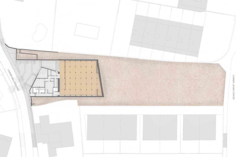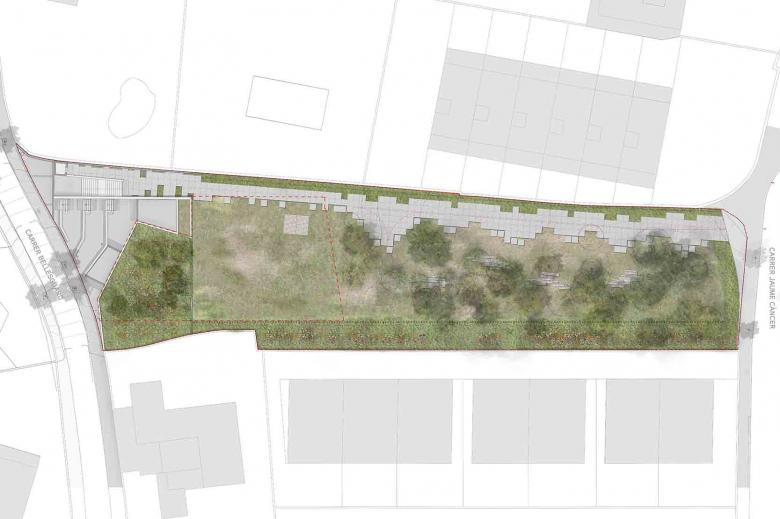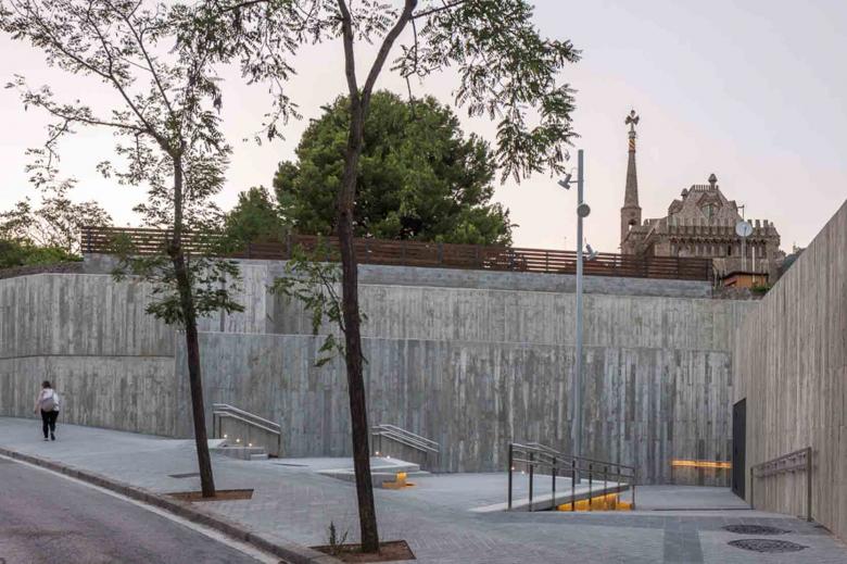 The access by the Bellesguard street opens on a levelled public square which gets narrower towards the entrance of the water tank space. This new square restores in the district a new public identity.