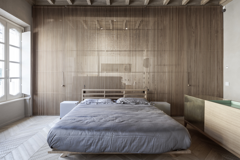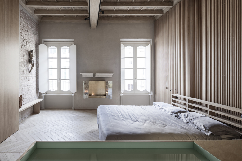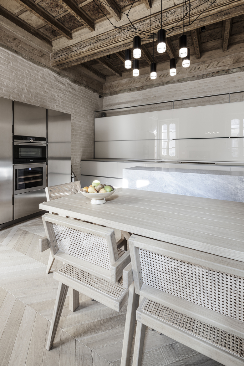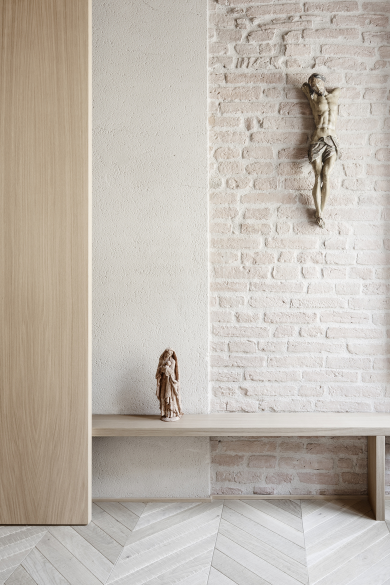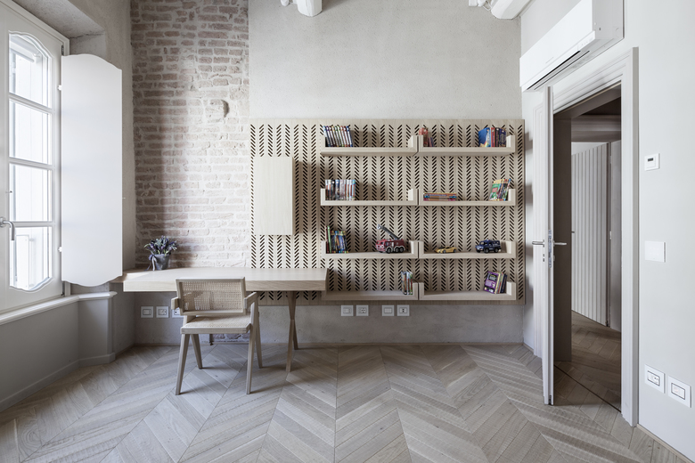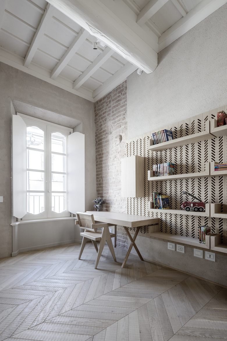The distribution organization of the spaces is maintained in original condition, while the subdivision of the interior spaces happens through the introduction of elements of furniture that reconfigure in part the structure, specifying the hierarchies.