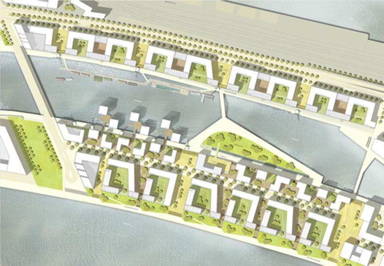 The definition of the boundaries is particularly im¬portant for the appearance of the neighborhood, which will also be recognizable by its outer limit. The shape of the northern limit is defined by the rail lines running along the Versmannstraße and the docks of the Baakenhafen harbor and of the Elba River, transcendent elements in the definition of the enclosure of the neighborhood.