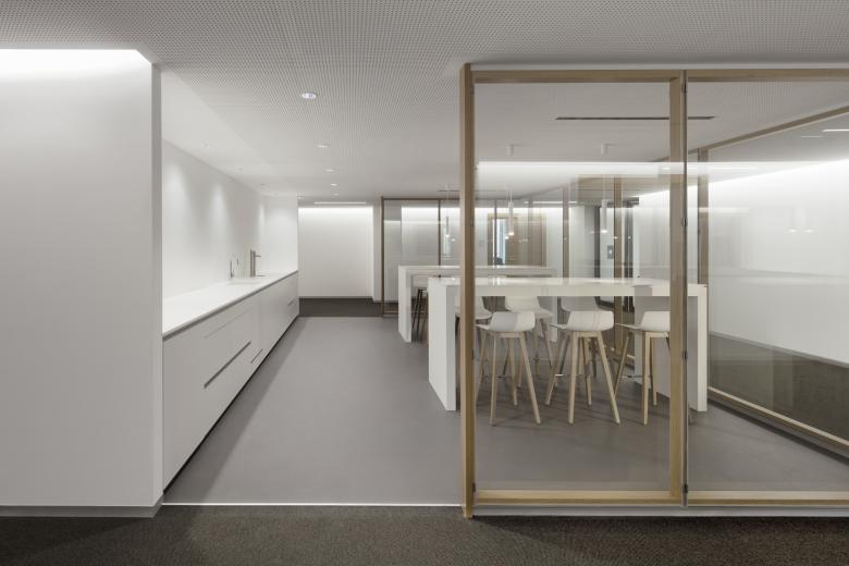 Die Sparkasse Nürnberg plante den Umbau und die Sanierung von Haus B in der Lorenzer Straße 2 in Nürnberg. Das Gebäude setzt sich aus dem 5-geschossigen Flachbau [E+4] und aus dem 7-geschossigen Hochbau [E +6] zusammen und befindet sich mit Ausnahme der im Jahr 2005 sanierten Tiefgarage im Zustand von 1975. Der komplette oberirdische Bestand wurde durch die Sparkasse bis Ende 2012 geräumt. Während des Auszugs und der Um- und Rückbaumaßnahmen musste der Betrieb der Tiefgaragengeschosse sichergestellt werden. Ziel war die energetische Sanierung der Gebäudehülle und die Entwicklung einer flexiblen, zukunftsfähigen Bürokonzeption. Das Gebäude wurde durch den Rückbau in den Rohbauzustand zurückgeführt. Die Tragkonstruktion musste für die heutigen Anforderungen in Bezug auf Brand- und Schallschutz ertüchtigt werden. Das vorgefundene Erscheinungsbild der Fassade, größtenteils als Lochfassade, und die Wirkung des Baukörpers im städtischen Raum sollten unter Würdigung des denkmalpflegerischen Ensembleschutzes erhalten bleiben. Für eine Verbesserung der Belichtungssituation wurden die bestehenden Brüstungen teilweise abgebrochen. Die geschlossenen Brüstungs- und Stützenbereiche wurden mit einer hinterlüfteten Natursteinfassade aus heimischem hellem Naturstein verkleidet. Die Fensterelemente sitzen als „kastenfensterähnliche“ Konstruktion in der Lochfassade. Sanierung, Umbau und Erweiterung erfolgten unter energetischen Gesichtspunkten. Die technische Ausstattung wurde mit Augenmaß umgesetzt, wobei die Vorgaben der bauzeitlich gültigen EnEV um 30% unterschritten wurden. In E 0 wurden die mit Kundenkontakt belegten Bereiche der Immobilienfinanzierung vorgesehen. In den Geschossen E 1 bis E 4 finden sich Büro- und Verwaltungsflächen. Die Ebenen 5 und 6 wurden aufgestockt, um weitere Büroflächen zu generieren. Hier liegen die Flächen für den Vorstand.