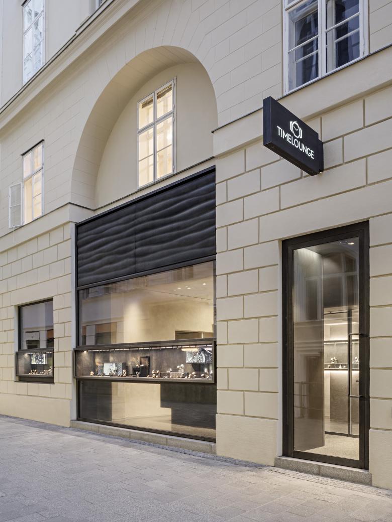 In a clear differentiation from other goldsmiths, Timelounge does not deal with the usual, internationally standardised design, but finds a clear counterweight. Partly determined by the protection of monuments, the concept of security and based on the existing building structure, BEHF Architects sets the look with maximum contrast: