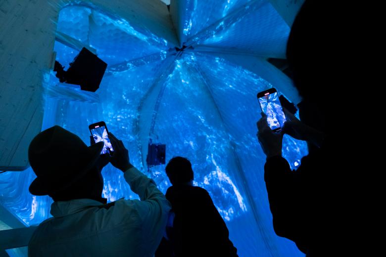 Inside, the installation becomes immersive through an interplay of digital projections and an acousmatic composition. Digital visuals and spatial soundscapes respond to the movement of visitors, creating a layered experience that transforms scientific data and ecological awareness into emotional, collective insight.