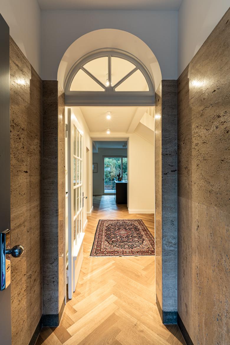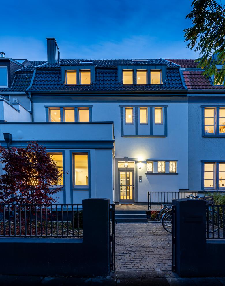 Umgestaltung eines historischen Stadthauses in Köln. Das Projekt lebt von dem Spiel aus alter Hülle und modernem Kern.