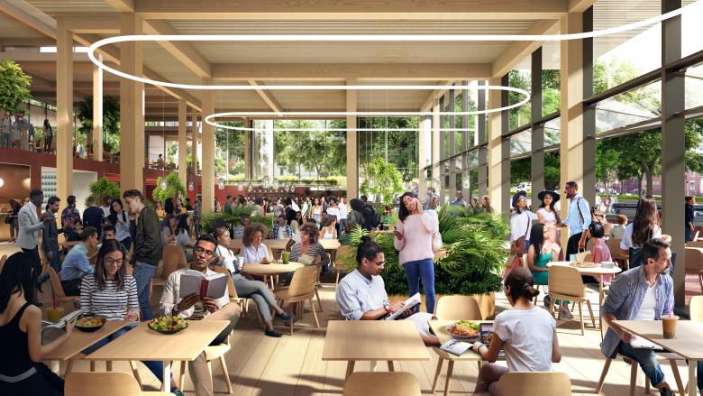 BIG’s design for Hopkins Student Center, or ‘The Village’, is an open, modern, and welcoming facility envisioned as a social engagement hub for all members of the Hopkins community.