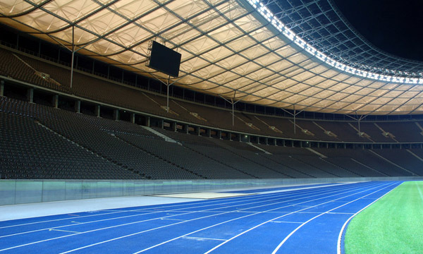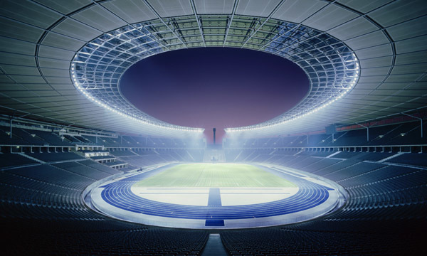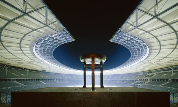 The roof, which inside the stadium rests on 20 extremely narrow steel supports, appears light and almost hovers during the day, a sensation that is all the more pronounced at night. This building is not only a piece of architecture with which Berlin can identify, it is also a great boon for soccer, which has gained one of the best sporting venues in Germany.”