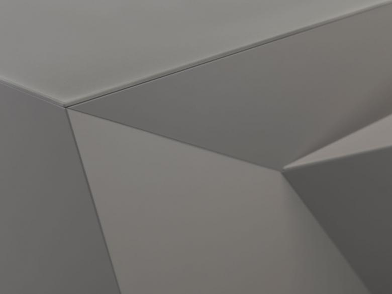 Um ein dauerhaft hochwertiges und pflegeleichtes Möbel zu erhalten, stimmte Clientis der Empfehlung zu, DKTN® von Cosentino im Farbton Galema für die Oberfläche zu verwenden. DKTN® besteht komplett aus natürlichen Mineralien, die sich in einem Sinterprozess unter hohem Druck und Hitze verbinden. Das UV-beständige, durchgefärbte und ultrakompakte Material ist in Formaten bis ca. 320 x 144 cm und Stärken von 0,4 bis 3 cm erhältlich.