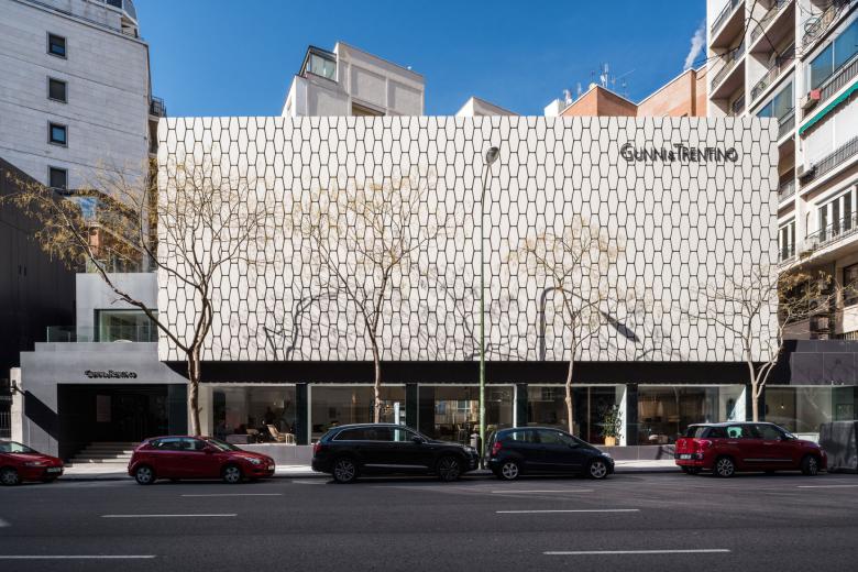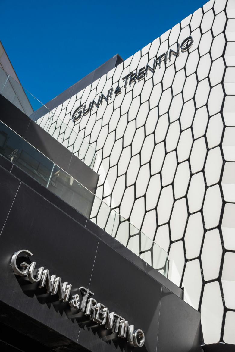 „Wir suchten zwei Farben: ein einfaches Schwarz für die Gebäudebasis und eine Kontrastfarbe zur Aufwertung der Baumasse. Wir wollten einen hellen Farbton, der die Schale als einheitliches Element gleichzeitig aufhellt und hervorhebt“, erklärt José Manuel Moreno, Partner und kaufmännischer Direktor bei Gunni&Trentino.