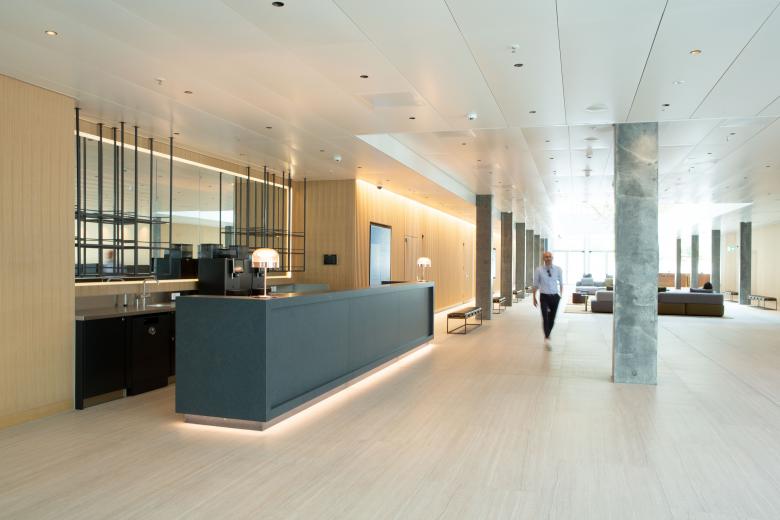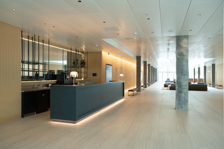Für die beiden Kaffeebar-Tresen kam FINEHARD zum Zug, genauer: Silestone Charcoal Soapstone von Cosentino Schweiz. Besonders hohe Anforderungen wurden an das Design und die Beständigkeit der Oberfläche gestellt.