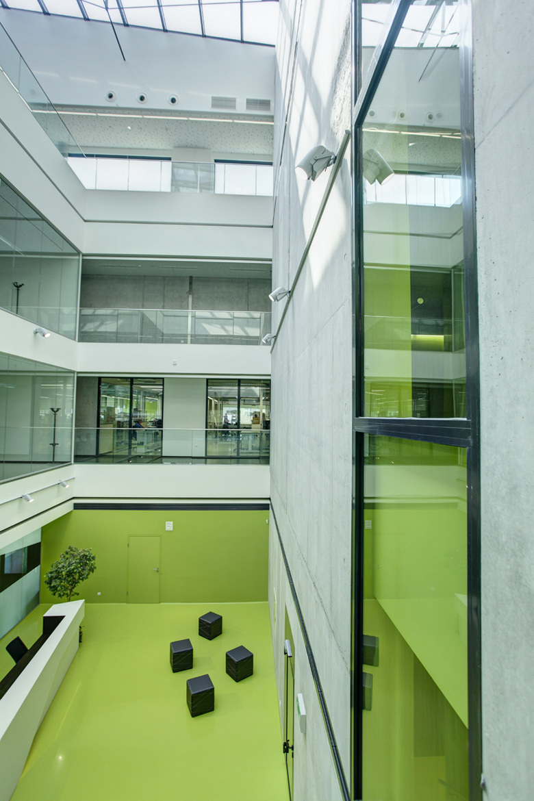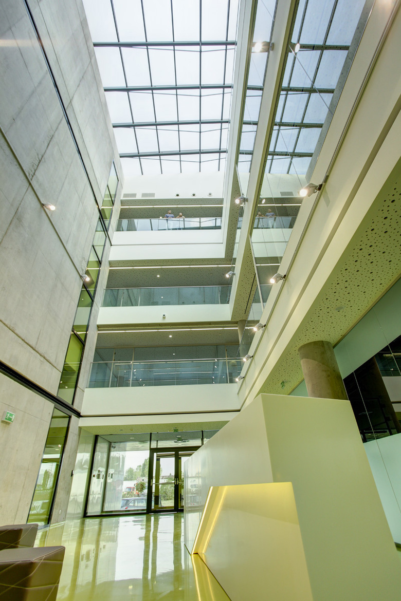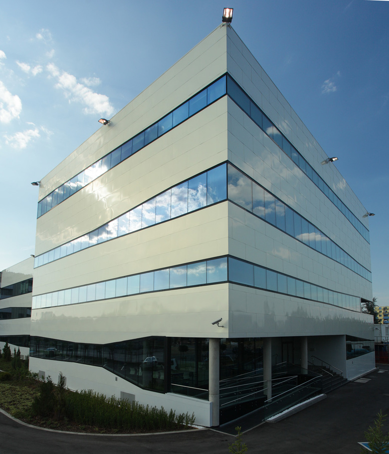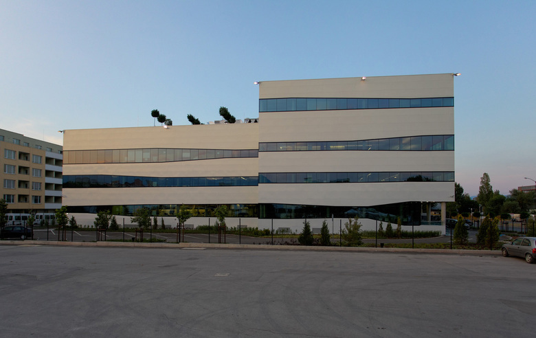 Für die Firma Centillion, einem bulgarischen Hersteller von elektronischen Bauteilen, entwarf DIN A4 Architektur das neue Betriebsgebäude für Administration und Produktion in Sofia. Mit seiner innovativen Ausbildung soll das Gebäude die Kompetenz der Firma zum Ausdruck bringen und zu einem "landmark" werden. Aufgrund der Produktionsanforderungen ist das Objekt mit Luftdruck-, Vakuum- und Stickstoffanlage ausgestattet, eine hochkomplexe Gebäudetechnik ist das Resultat. Vor Ort wurde ein