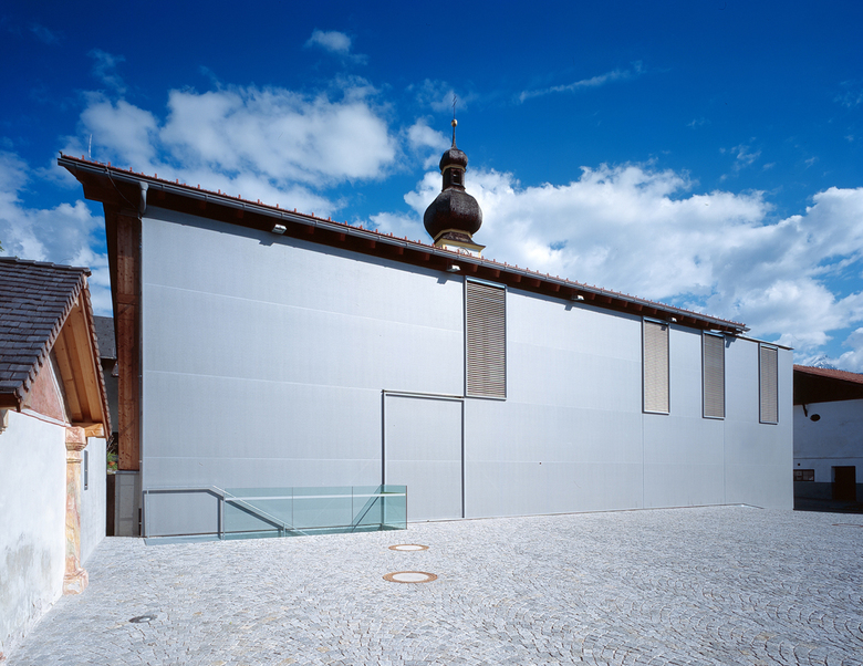 Ein im dörflichen Kontext von Mils eingebetteter, historisch geschützter aber baufälliger Bauernhof (Mittertennhof) sollte als neues Gemeindezentrum adaptiert werden. Der Entwurf von DIN A4 Architektur ging aus dem geladenen Wettbewerb 2000 als Sieger hervor. Im Zuge des Umbaus stellte sich die Frage, wie man mit alten Raumstrukturen umgeht, die anders als ursprünglich genutzt werden sollen.
