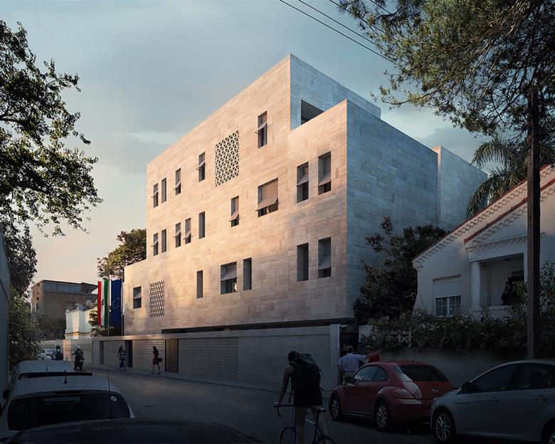 The plot is situated in an urban area with historical significance. The influence of Arabian culture is traceable in playful floor plans and volumes as well as in exterior decorative elements.