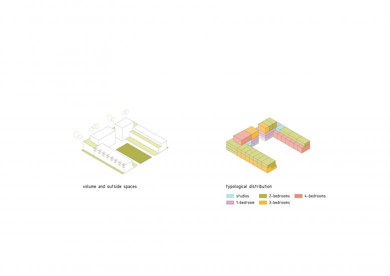 The project reflects on the search for new qualities in housing which develop at the interaction of the individual and the collective, combining the qualities of individual housing with the efficiency and sustiainbability of collective housing. In a single operation, it combines very different typologies: crossing town-house with terrace and garden on the street, inverted duplex with loggia open to the sky, penthouse duplex with large terrace, panoramic dwellings, large outdoor spaces...
