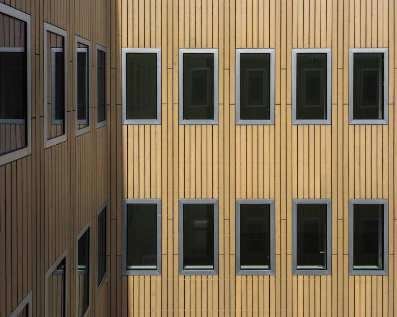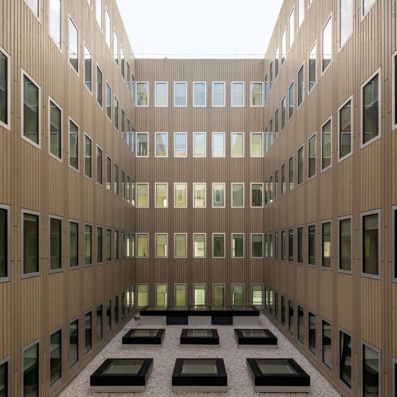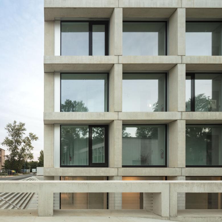 L’ISMO montre côté nord, les activités de laboratoire principales, grâce à sa façade transparente. Les autres façades sont entourées par une peau climatique et ont une façade porteuse épaisse en «brise soleil». Le centre de l'Institut définit une zone de rencontre verticalement ouverte ou l’on travaille de façon plus décontractée au contraire des zones de concentration des bureaux. Le cœur de la construction reçoit ainsi ses usagers et leurs invités dans un milieu ouvert et confortable.