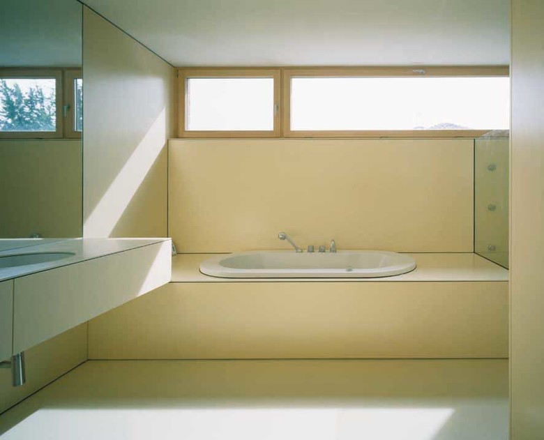 Die Glätte der Oberflächen verweist mit Nachdruck darauf, dass diese Wohnwelt leicht sauber gehalten werden kann. Fliesen sind Fehlanzeige. Fugen höchst selten. Die Wände sind im Schleiflack gehalten. Der Kautschukboden ist pflegeleicht.