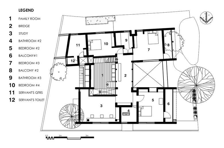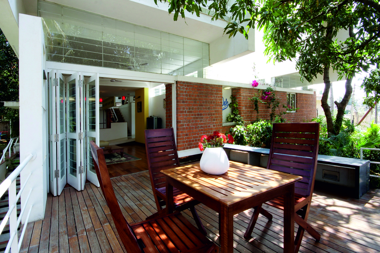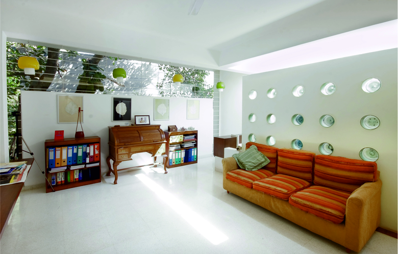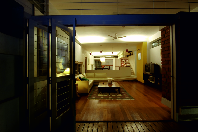 The Ghose Residence sits on the outskirts of a burgeoning Bangalore. It looks over a valley which once was a lake, and will soon become embroiled in construction activity.