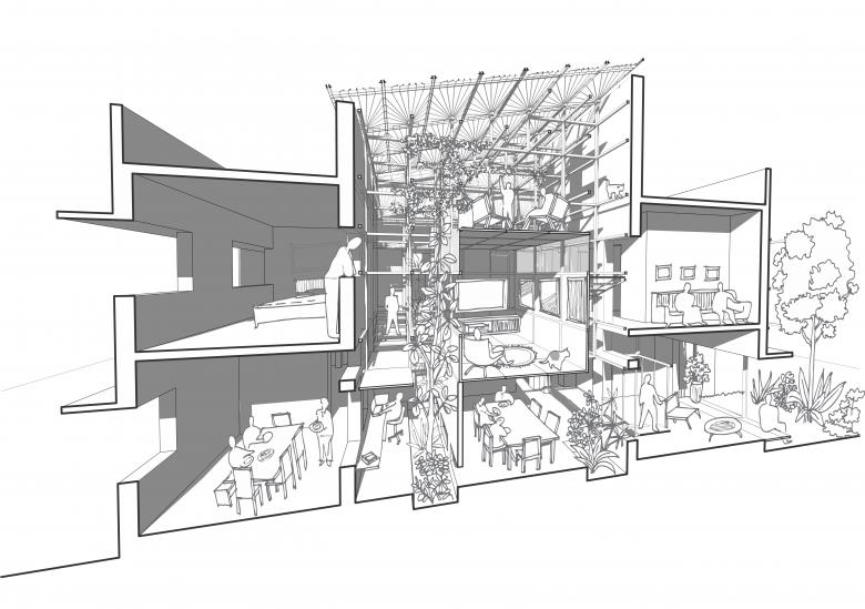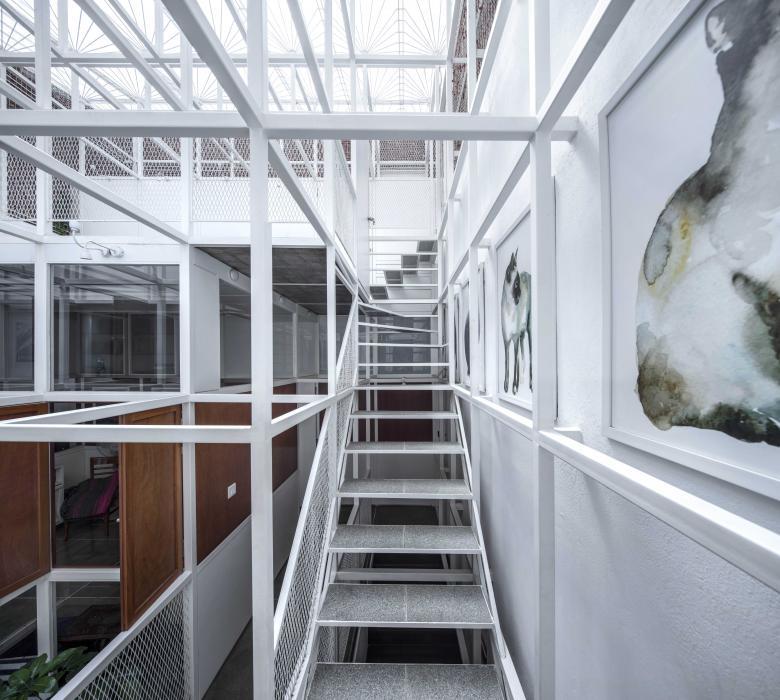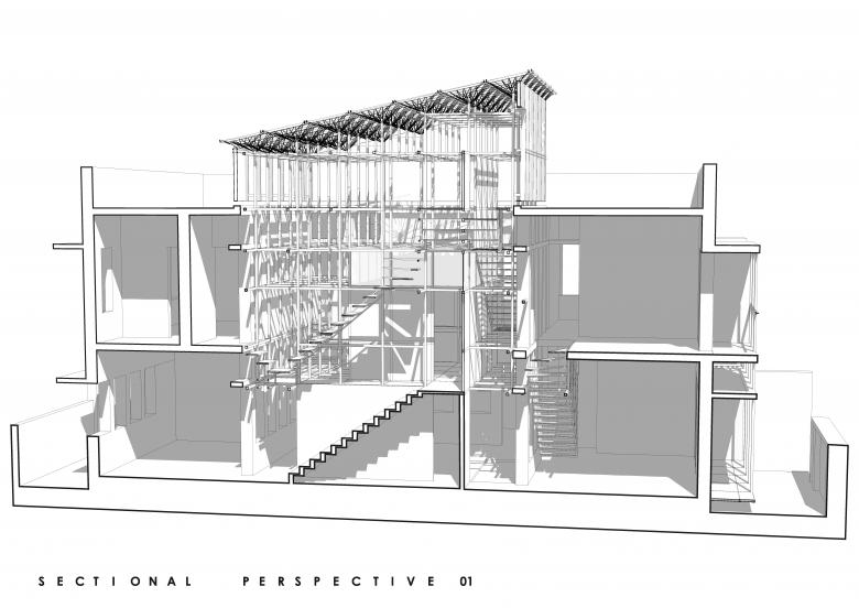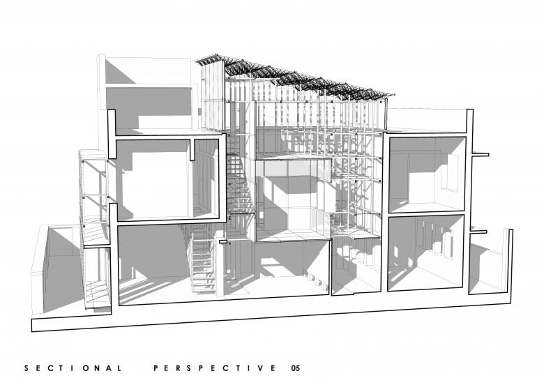 The idea of the Scaffold house stems from a pragmatic approach towards renovation, clarifying the understanding of the 'new' in context to the 'old'.