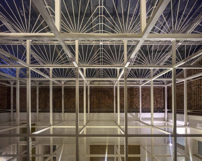 A square of 20'x20' in the centre of the building was broken down carefully becomingthe central core for this intervention. This space became the volume catalyzing the restructuring process.
