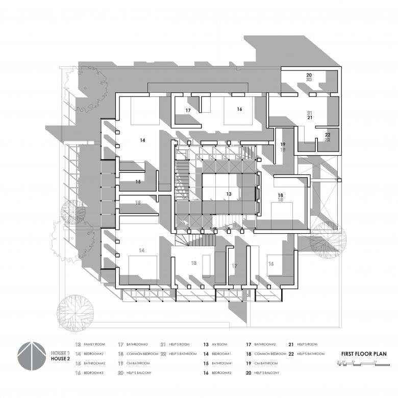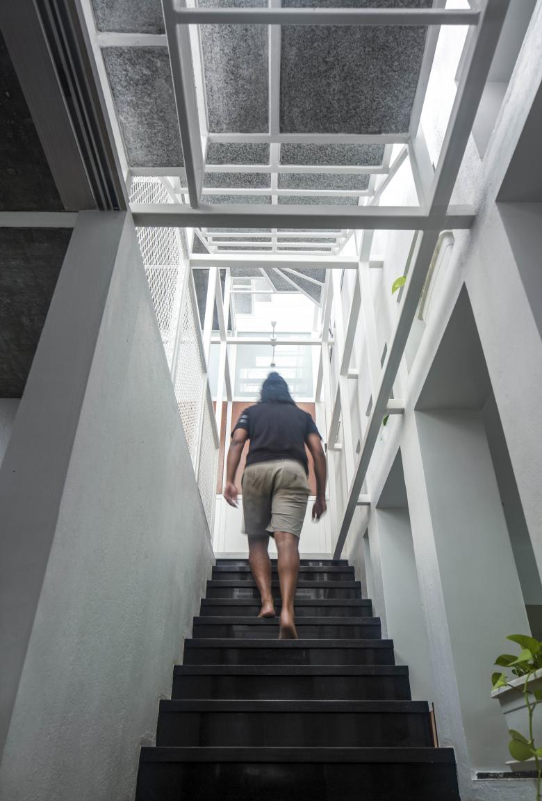 The staircases, passages, gardens, and circulation spaces came into this central space, including an AV room and a terrace sit-out.