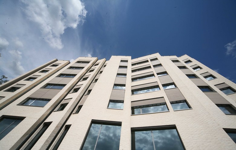 Clad with exposed-aggregate panels in the typical manner of its time, the old three-volume office complex of the Metsätapiola real estate company had stood in south-eastern Tapiola in Espoo near the Länsiväylä thoroughfare from 1974. In summer 2009 the Metsäliitto co-operative, owner of the property, initiated a project for the renovation of the complex, covering the design and completion of a new office building as well as the renovation of the highest, eight-storey volume, especially as regards its facades and ground-floor spaces. The lower volumes were demolished and their part of the site was parcelled out for residential construction.