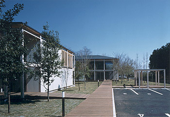 Shonan-Fujisawa campus is known for taking initiative to create a new educational and research environment in an information network based society. The design studio building, completed in 2000 was one of these new developments. To facilitate communicating with the natural environment and to complement the busy campus center zone, the buildings, a group of small research labs, is designed to have an atmosphere of residential units and resort suites.
