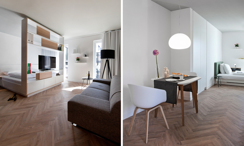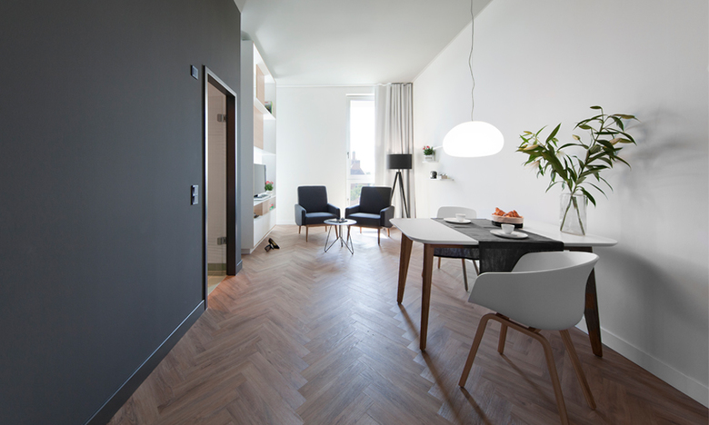 The creation of compact living space in urban centres will be one of the greatest challenges of the future. For the SMARTments living concept by property developer GBI, Kinzo developed a modular construction kit for micro apartments. The room units combine economic feasibility with good design, offering the occupants many options for customising their space to match their mood.