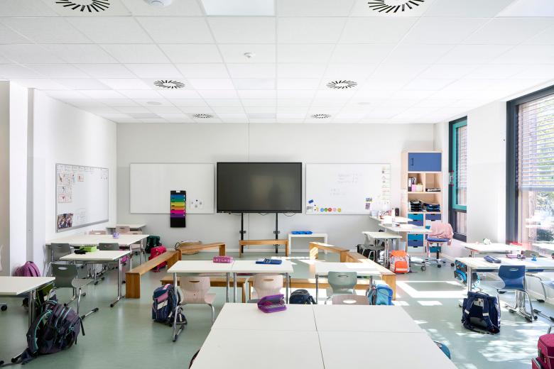Die Neubauten werden durch Angleichung der Außenanlagen und die Farbgestaltung der Fassaden behutsam in das jeweilige Schulgelände eingebunden. Die effiziente und elementierte Bauweise erlaubt eine vergleichsweise kurze Bauzeit – bei laufendem Schulbetrieb. Helle und freundliche Raumatmosphären, sowie lernunterstützende Farbkonzepte und hochmoderne technische Ausstattung mit Nachtauskühlung im Sommer und optimaler Tageslichtnutzung, solarer Wärmegewinnung und Außenverschattung sorgen für flexible und effiziente Bildungsgebäude und zukunftsfähige Räume für die Schülerinnen und Schüler.