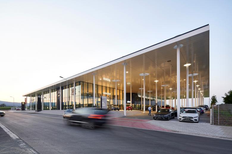 Der Neubau zählt zu den „Mercedes Leuchtturm“ Projekten und basiert auf das Rex-Base-Konzept der Daimler AG. Hier werden Autos mit dem Stern im modernsten Ambiente präsentiert. Rex steht für Retail Excellent. Das sind Leuchttürme im Händlernetz. Daimler möchte in den Marktverantwortungsgebiete einen sogenannten Leuchtturmstandort haben. Flagship-Store mit Showroom entstehen, mit digitalen Medien können die Mitarbeiter den Kunden die Produkte und Dienstleistungen noch anschaulicher erklären.