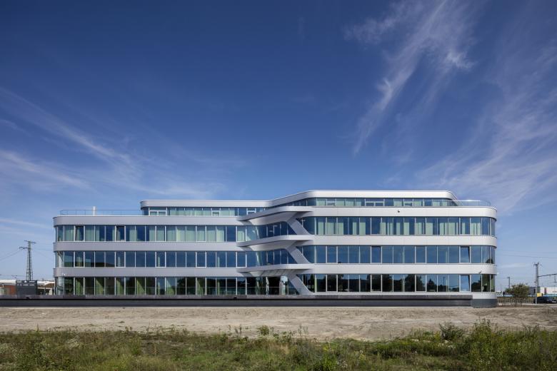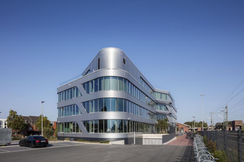 Mit seiner Leichtmetallfassade wirkt das Gebäude sehr grafisch.