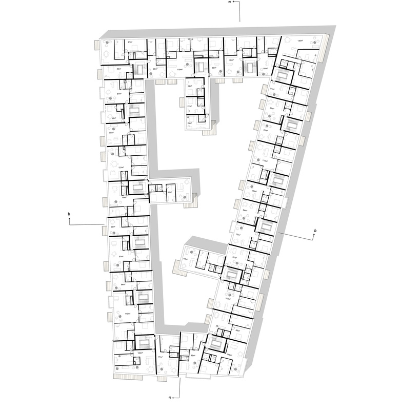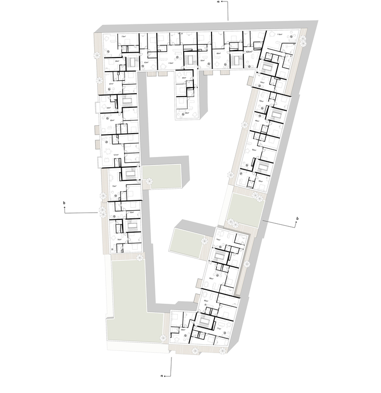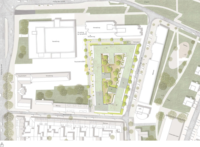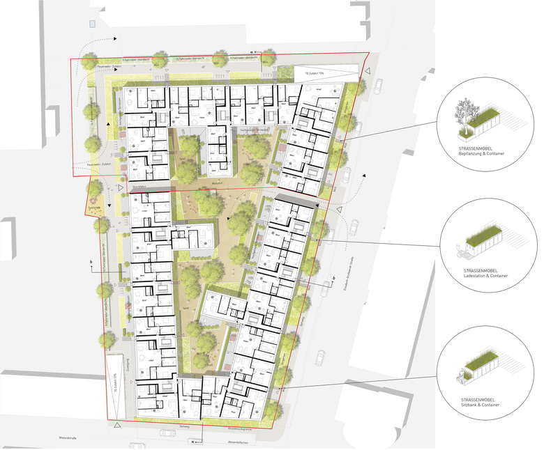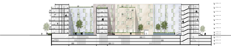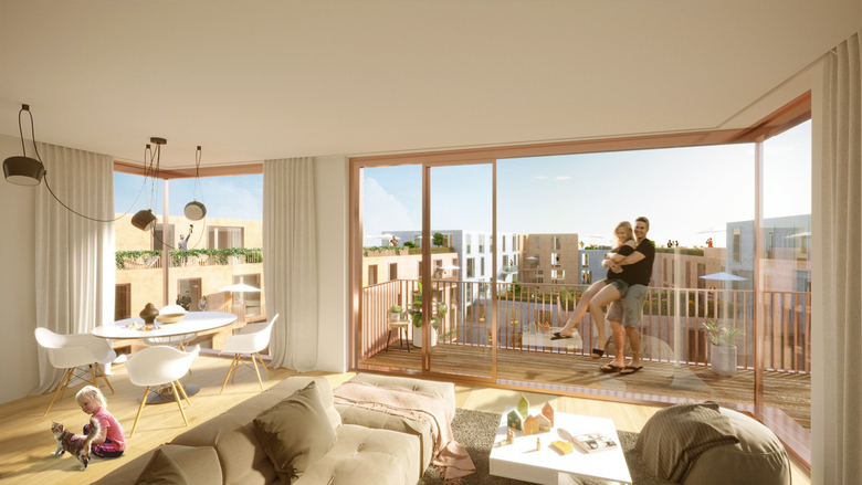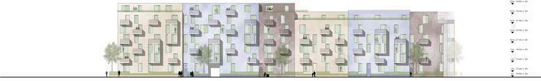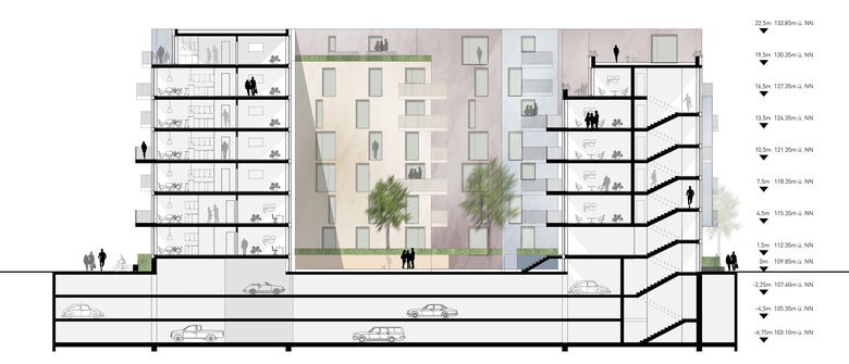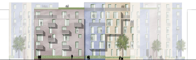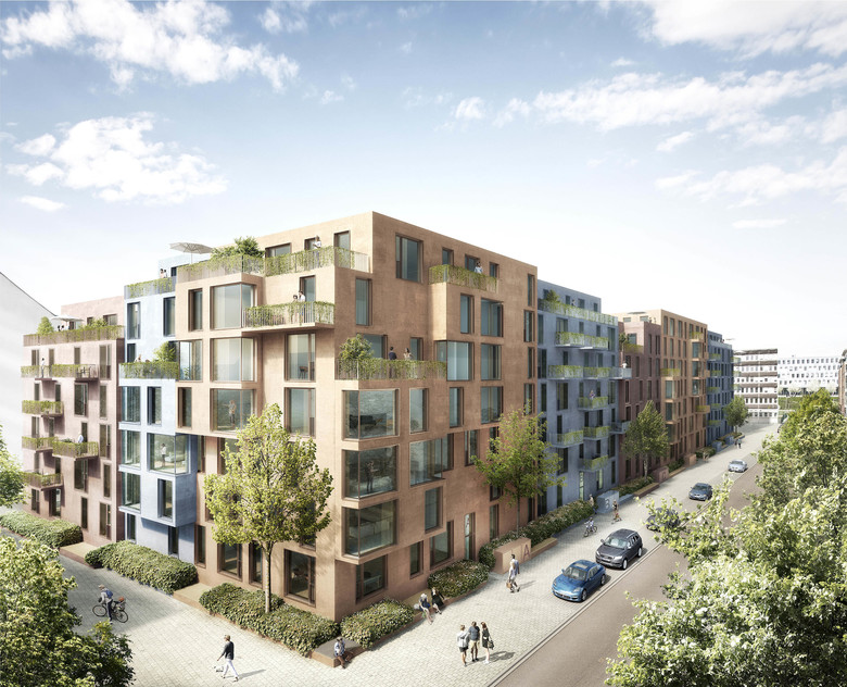 KWArtier is a current project of GIEAG Immobilien AG. Six renowned architectural firms were recently shortlisted in the competition for the new housing construction. At the end KRESINGS convinced the jury with its design. If you look at the environment, it becomes clear that the property is surrounded by a heterogeneous architecture consisting of a development area, the old town and buildings from the 70s and 80s. The architects respond to the epoch and material mix by incorporating the block-edge structure of the surroundings into their design, thus adapting to the large-scale proportions of Karlsruhe. The facade receives a horizontal and vertical modulation and is designed in different colors. The result is a quiet building form that self-confidently asserts itself in its environment. The projections and recesses give the impression of grouped units, counteract the large scale of the apartment block and, in harmony with the surroundings, create a harmonious overall picture. The exterior design contributes to maintaining the classical hierarchy between public, semi-public and private spaces. On the one hand, the privacy of the ground floor apartments can be guaranteed by the surrounding green area on the building's pedestal. On the other hand, the courtyard is a protected retreat area with private and common areas. The new residential district should promote a good neighborhood in the future: Away from anonymous side-by-side towards friendly cooperation!