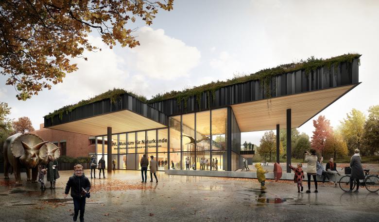 Das LWL-Naturkunde Museum in Münster mit angeschlossenem Planetarium aus den frühen 80er Jahren ist über die Region hinaus bekannt. Etwas in die Jahre gekommen, wird es nun saniert und umgebaut. Neben der infrastrukturellen Modernisierung entstehen neuen Büroflächen, ein Atrium und ein Besucherzentrum. Vorherrschende Materialien für die nachhaltige Erweiterung sind Holz und Glas. Der helle und lichtdurchflutete Anbau erweitert das Museum für kommunikative Nutzungen, drängt aber nicht den prägnanten Klinker-Bestandsbau in den Hintergrund.
