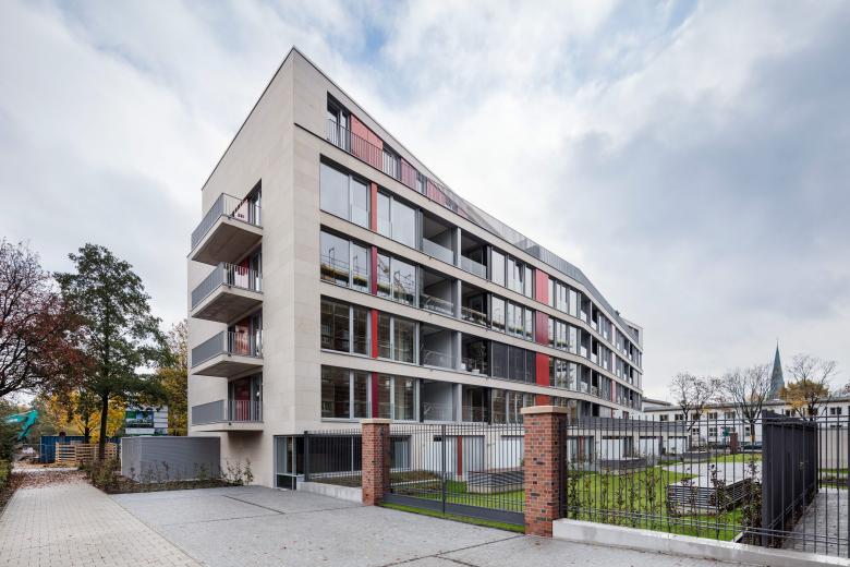 In dem ehemaligen Präsidentengarten der Oberpostdirektion Münster ist ein Wohngebäude mit 6 Geschossen und einem Untergeschoss sowie 33 Eigentumswohnungen entstanden. Der Neubau greift die wesentlichen Höhenbezüge des denkmalgeschützten Gebäudes der ehemaligen Oberpostdirektion auf. Durch die skulpturale Ausformung des Baukörpers entstehen differenzierte Bezüge zu dem historischen Gebäude. Der strengen preußischen Grundordnung des Bestandsgebäudes wird ein klar strukturiertes, aber zugleich vielschichtiges und eigenständiges Gebäude zugeordnet.