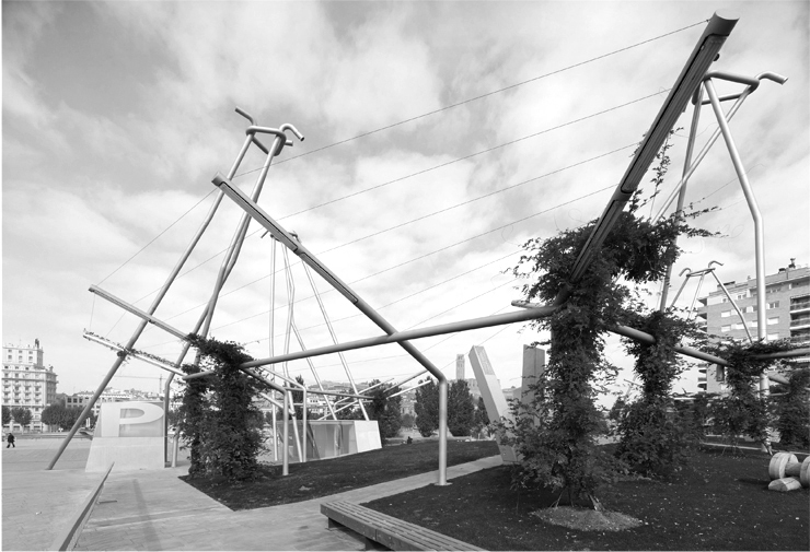 Blas Infante square: The proposal represents and symbolizes the new centrality that Blas Infante Square offers in a contemporary way. The project is developed from the duality of the two scales that are mixed: the scale of the neighborhood, immediate environment, and a larger size, the city and its historic center. Conformance with the district of Cap-Pont and relationship to the historic center. For the use and immediate environment has been created a neighborhood place, a place of rest, leisure, neighborhood relationship, with shade and benches, playgrounds, grass and floral vegetation following the route of the pergola as protection for the summer.