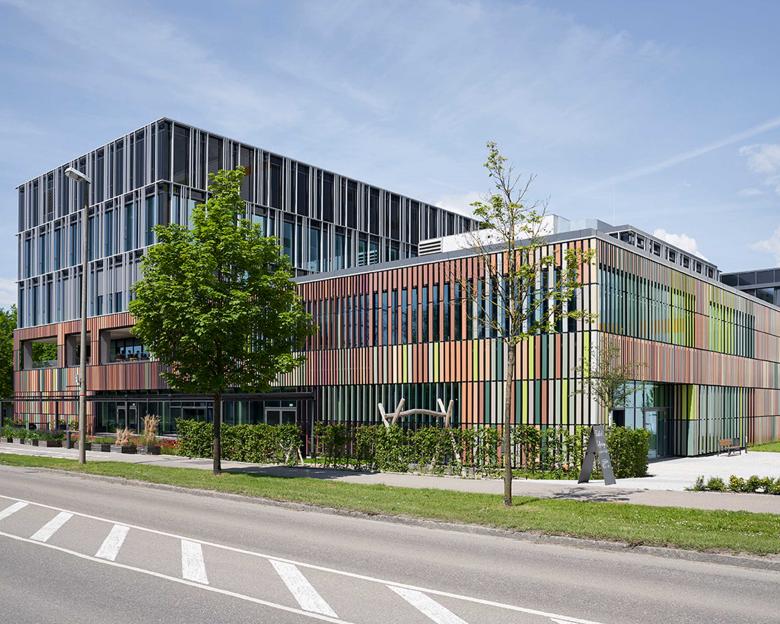 Dieses Zusammenspiel verschiedener Funktionen wie emotionaler Komponenten wird im Fassaden- und Farbkonzept auch nach außen hin sichtbar. Ein Entwurf, mit dem wir die Natürlichkeit der Produkte und der Marke wie ihr stetiges Wachstum symbolisiert haben. Das einerseits bodenständige wie zugleich weltoffene Unternehmen erhält durch einen geschlossenen Gebäudekomplex mit Keramikblende seine Basis, die sich nach oben hin öffnet und Transparenz und internationalen Weitblick vermittelt. Kombiniert mit zeitlosen, natürlichen und leichten Farben, die in Zusammenarbeit mit einer Farbprofessur erarbeitet wurden und im Verlauf der Fassade ein angenehmes und abwechslungsreiches Spiel ergeben.