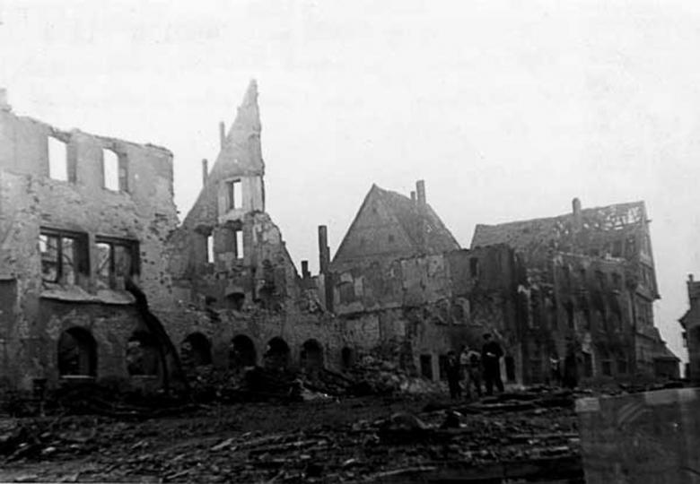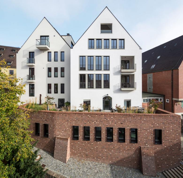 Nur eines davon wurde nach 1945 über den erhaltenen Gewölben wiederaufgebaut. Das andere durch einen Garagenanbau ersetzt. Im Zuge der Neubaumaßnahmen wurden beide Gebäude bis zur Oberkante des Gewölbe im Erdgeschoss abgebrochen. Platz für zwei Bürgerhäuser in zeitgemäßer Architektursprache, mit insgesamt sieben Einheiten: drei Wohneinheiten, drei gewerbliche Einheiten sowie eine Stiftung und Tiefgaragenstellplätzen.