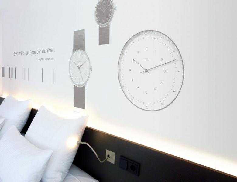 Die Auswahl von Mobiliar, Farben und Accessoires erfolgte nicht nur unter dem Aspekt der Langlebigkeit, sondern auch mit Fokus auf gesundes Wohnen mit schadstoffarmen Materialien. Darüber hinaus erzeugen gegensätzliche Materialien wie weiches Holz kombiniert mit Stein optische Lebendigkeit. Die Leitfarben Orange, Hellblau, Hellgrün und Rot, die die einzelnen Etagen individualisieren, stellen eine Hommage an die Hochschule für Gestaltung Ulm dar, deren Designobjekte ebenfalls in die Ausstattung des Hotels integriert und somit erlebbar gemacht wurden.