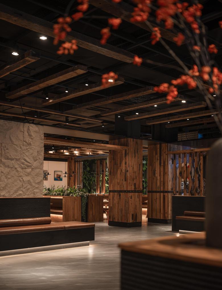 The project organizes the interior space through a tripartite strategy of structure, material, and atmosphere. It retains the openness and lively spirit of a traditional seafood street diner (“dapai dang”), while reinterpreting it through contemporary spatial methods. This is achieved by reconstructing timber frameworks, layering lighting strategies, embedding circulation paths, and introducing moments of enclosure—thereby aligning functional efficiency with spatial storytelling. The overall interior is divided into a three-part sequence: The street-facing reception zone welcomes guests with an open layout and a display ice pool, evoking the coastal imagery of “fresh catch landing ashore”; The central dining hall is governed by a system of timber frameworks that define order and rhythm, fostering a sense of gathering and social intimacy; The innermost section features semi-enclosed dining booths tailored for family meals and small-group interactions.