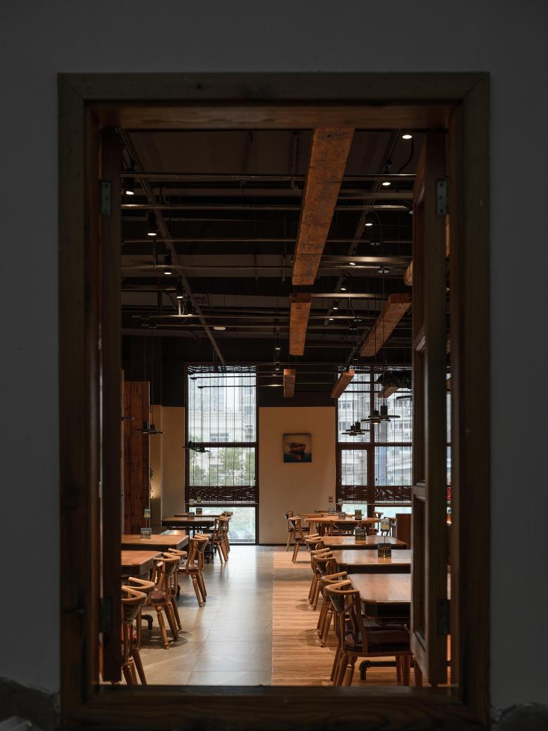 The ‘pier into the sea’ takes its meaning from the distribution place where the river enters the sea, which is a critical place where people, objects and emotions meet. Instead of reproducing the imagery of ‘seafood’ and “wharf” in a symbolic way, the design extracts the spiritual characteristics of the space, and takes ‘openness, enclosure, aggregation and flow’ as the organisational logic to build a space with a sense of wood rhythm and stone texture in a limited space. Instead, it extracts the spiritual characteristics of the space, taking ‘openness, enclosure, gathering and flow’ as the organising logic, and builds an urban fishing harbour with a sense of rhythm of wooden structure and stone texture in limited space. The design tries to build a daily residence with a sense of ‘docking’ in the urban neighbourhood, so that seafood dining can return to the freshness of food itself and the temperature of social instinct. In a series of construction strategies such as material, scale, light and interface, the designers emphasise the generation of a sense of place and respond to the disappearing “public eating space” in urban life.