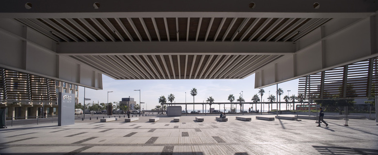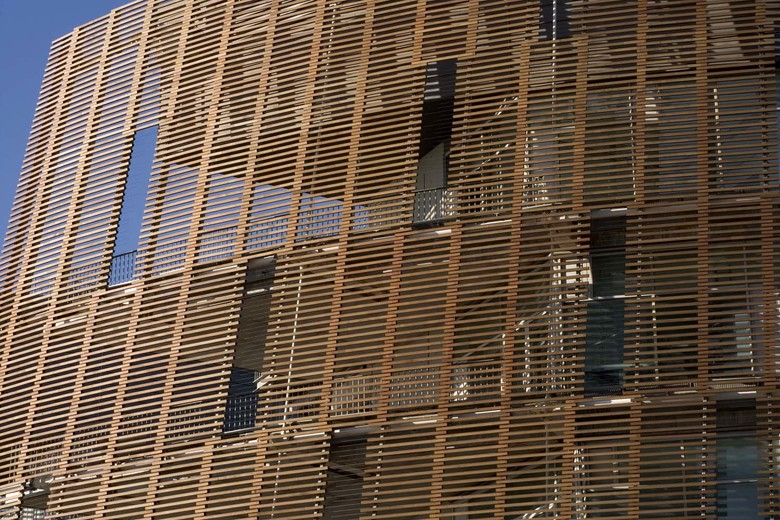 The building profile descends towards the sea to fit in with the buildings on the maritime front. The wooden structure of the closure projects around seven metres from the floors all around the perimeter with the idea of lightening a large volume. Also, the centre of the building is left empty to frame sightlines, control sunshine and create an image of lightness with respect to the volume.