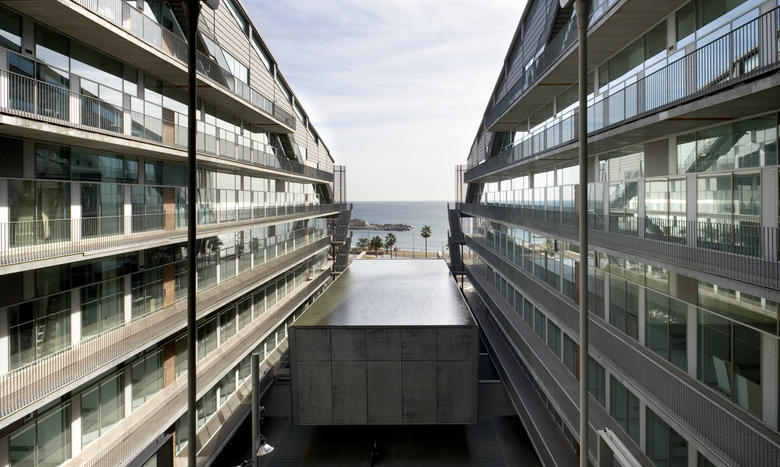 This centre is part of the health macro-block of Hospital del Mar, which combines health care, teaching, and research. The challenge is, then, for the building to be reconciled with its location, in a space surrounded by remarkable structures from different eras with which it does not compete in height but does have a formal dialogue in this urban consolidation environment. Thus, with its elliptical shape, this large building can be adapted to that particular space.